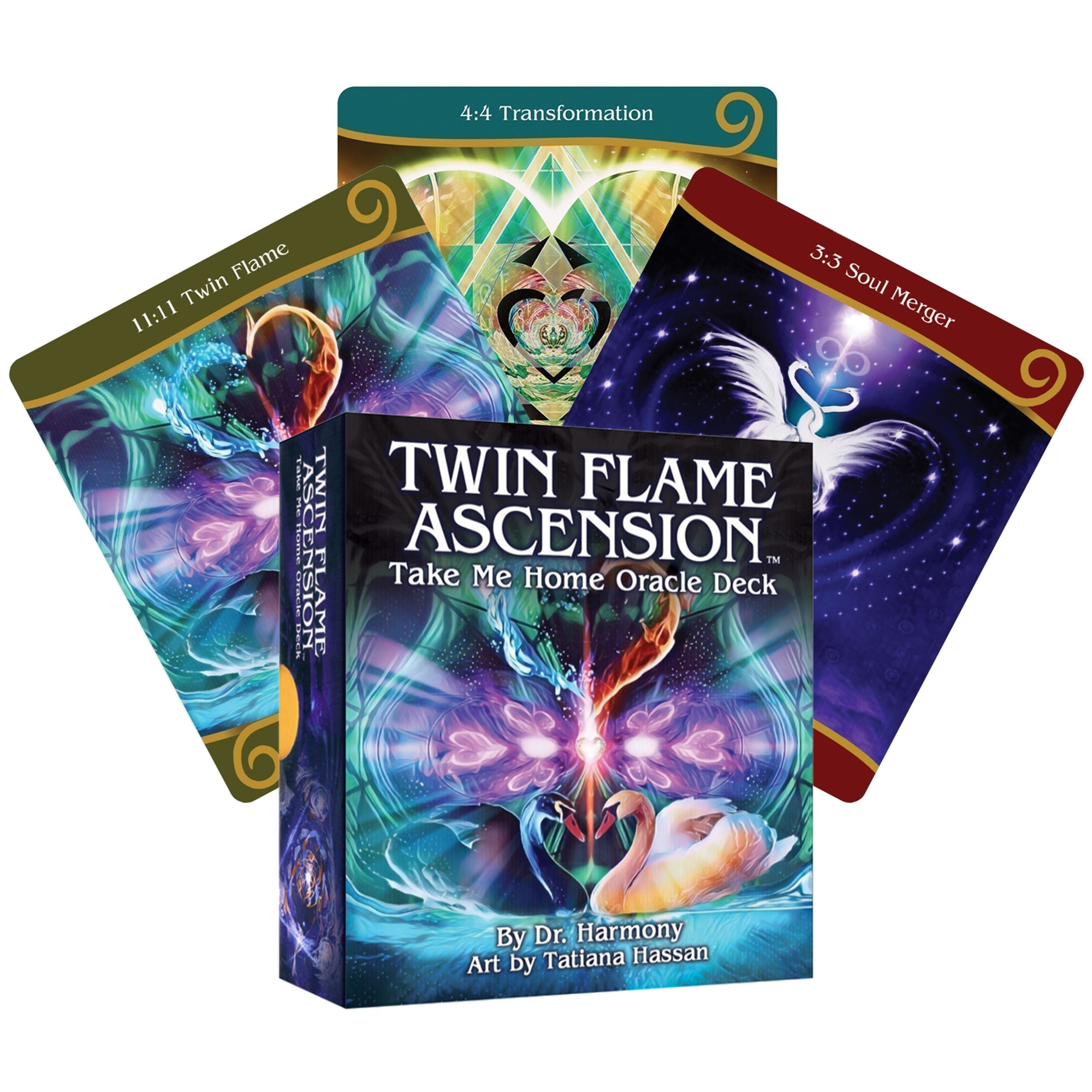 „Twin flame ascension“ yra savęs aktualizacijos procesas, kuris prasideda, kai jūsų vidinis sielos „aš“ suaktyvėja per dvasinį pabudimą. Šis Take Me Home Pathway kursas susideda iš 11 žingsnių dvynių liepsnos pakilimo kelionėje. Kortų vaizdai ir energija veda jus per atgimimo procesą, kuris leidžia pakeisti suvokimą, įgyti naujų įžvalgų ir pasiekti didesnį pasitenkinimą visose gyvenimo srityse. Rinkinį sudaro 55 kortų kaladė, 108 puslapių vadovas ir pritaikyta skaičiuoklė.