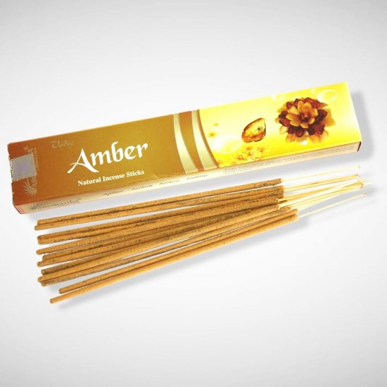 Vedic “Amber” smilkalų lazdelės gaminamos iš aukščiausios kokybės gintaro kristalų, sumaišytų su halmaddi ir medumi. Deginant juos ūsų patalpų atmosfera prisipildys malonaus kvapo.