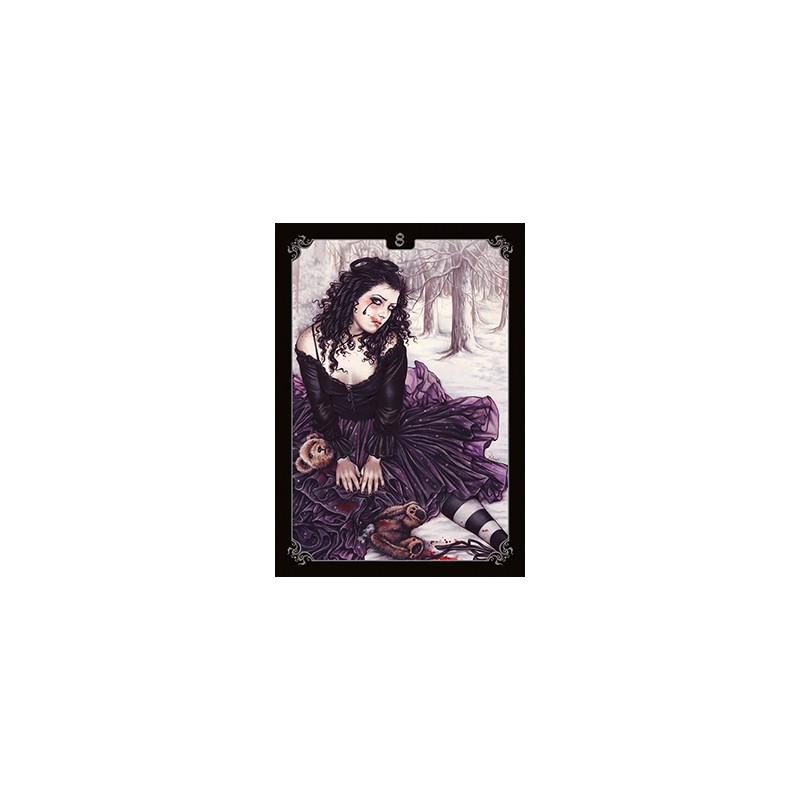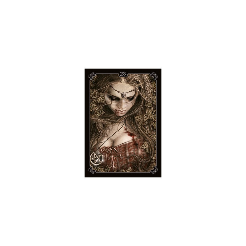 Viktorija Frances (garsi menininkė iš Valensijos, Ispanijos) menininkauja įvairiomis temomis, nuo romantikos iki fantazijos, nuo magijos iki istorijos, kuriai įtakos turi išraiškingumas Rapahaelitų tapyboje ir labiausiai legendinių gotikos žanro kūrinių. Ši išskirtinė “Oracle” kortelė, sukurta “Lo Scarabeo”, yra dar vienas iš mylimo smenininkės šedevras.