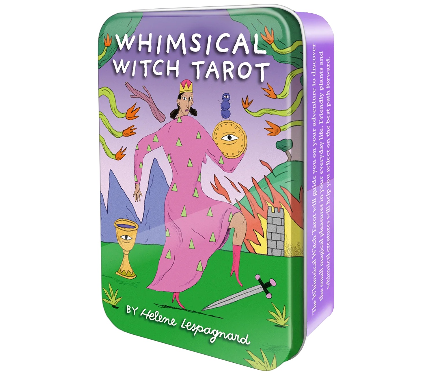Pristatome spalvingą kortų kaladę, kupiną netikėto humoro ir begalinės vaizduotės. „Whimsical Witch Tarot“ kortos padės jums atrasti mažus, stebuklingus malonumus kasdieniame gyvenime. Draugiški augalai ir linksmi padarai pasveikins jus šioje vaizduotės šalyje ir padės rasti geriausią kelią į priekį jūsų raganiškoje taro kelionėje. Žavios komiksų stiliaus iliustracijos atspindi mažus gyvenimo stebuklus su maloniomis detalėmis ir taro simbolika.